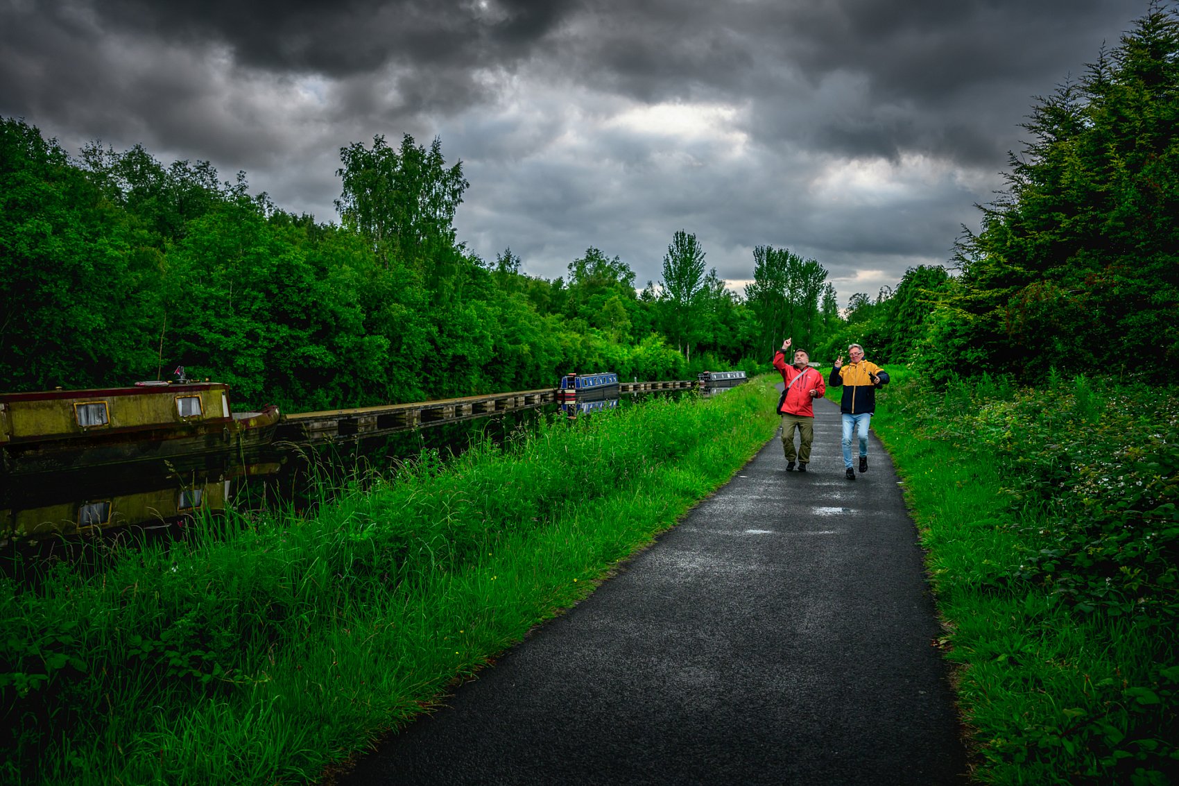 - Popis fotografie: 8.6.2025, s kamarády ve Skotsku, cestou do hospody dva z nás zkoušeli zaříkávat déšť, abychom nezmokli cestou na večeři...