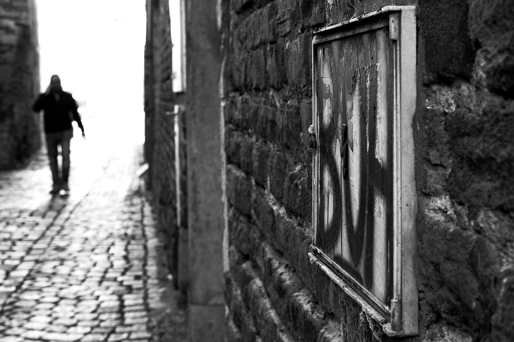 - Popis fotografie: 23.10.2025 ulice Olomouce. Narazil jsem na tento nápis v opuštěné ulici. Když jsem jej fotil, začal se blížit muž, tak jsem rychle změnil úhel a zabral jej do záběru také.