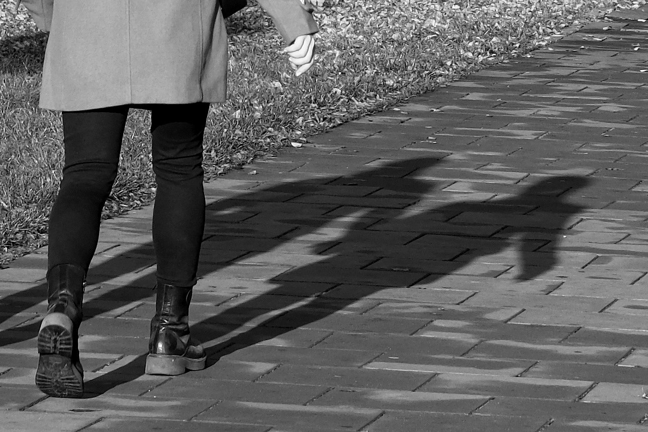 - Popis fotografie: 23.10.2025 Olomouc. Detail samotné dívky a jejího stínu společně se stínem jejího přítele.