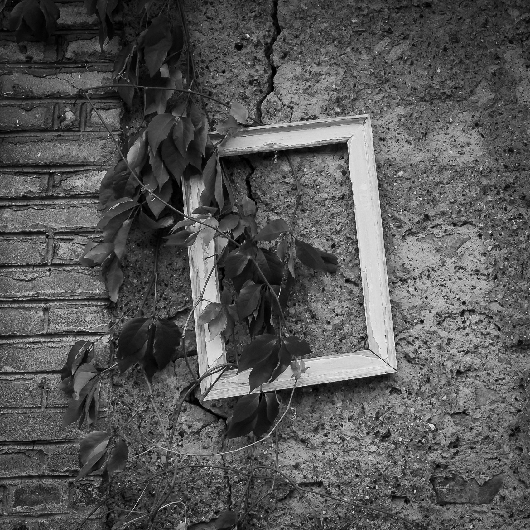 - Popis fotografie: 24.10.2025 při podzimním úklidu zahrady na chalupě - v jedné ruce hrábě, ve druhé foťák a pohled na zeď naší stodoly, který tak trochu odráží moje rozpoložení - popínavá škrtící rostlina, okno vedoucí nikam, trhlina na zdi