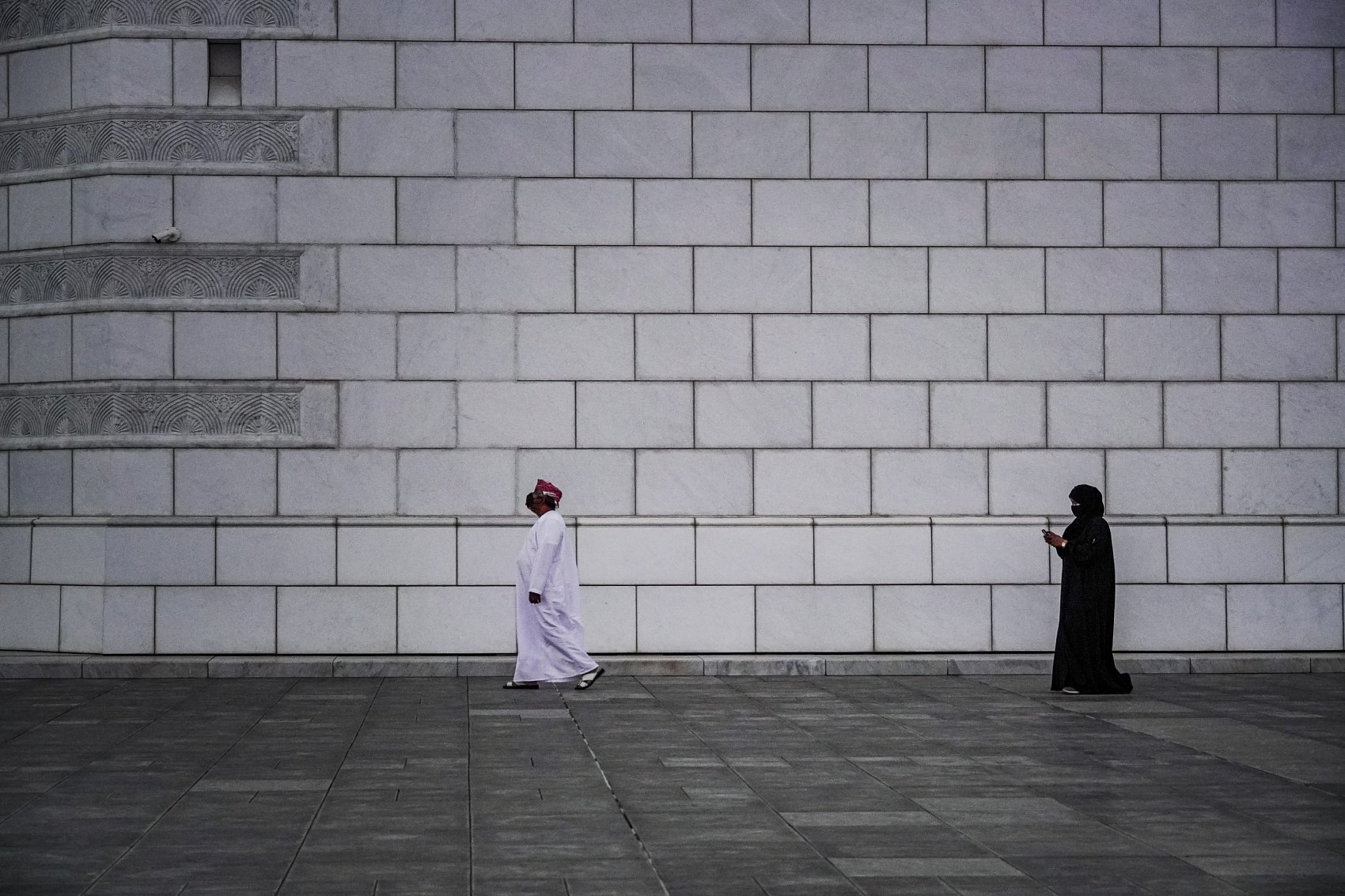 Manželé mířící do mešity v ománském Muscatu