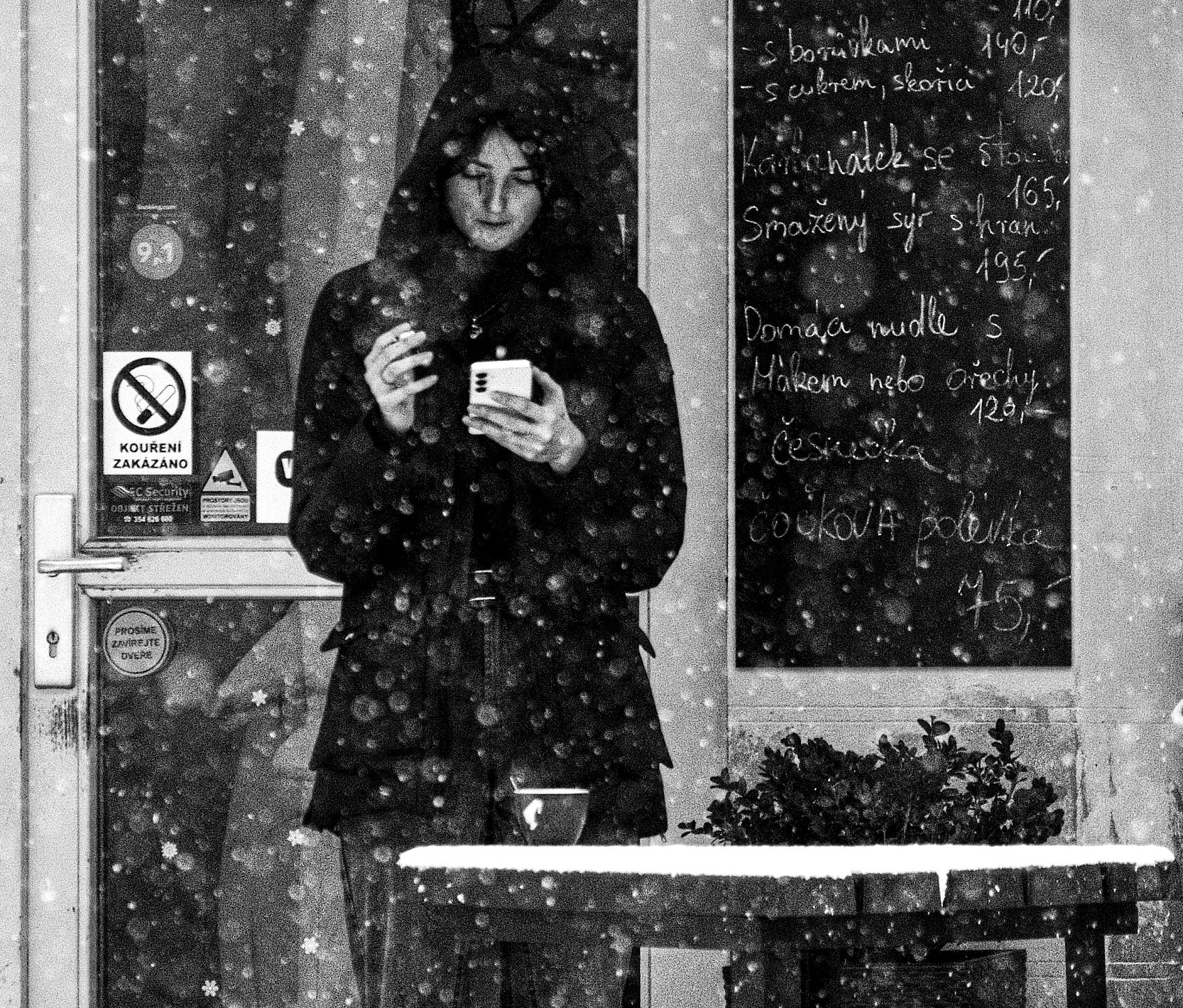 - Popis fotografie: 2026 2.1. - Uviděl jsem dívku jak kouří a pije před kavárnou.