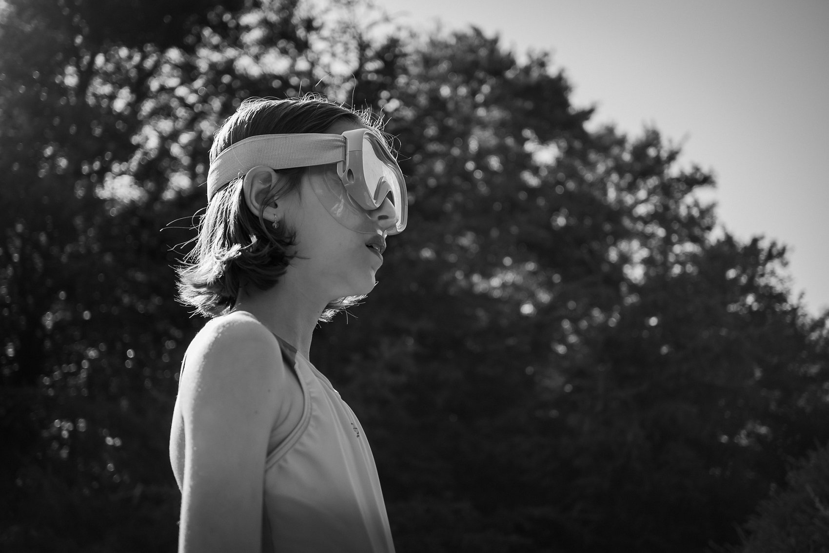 Foceno v létě 2025 na chalupě. Moje dcera jako heroická potapěčka chystající se zdolat malý zahradní bazének.