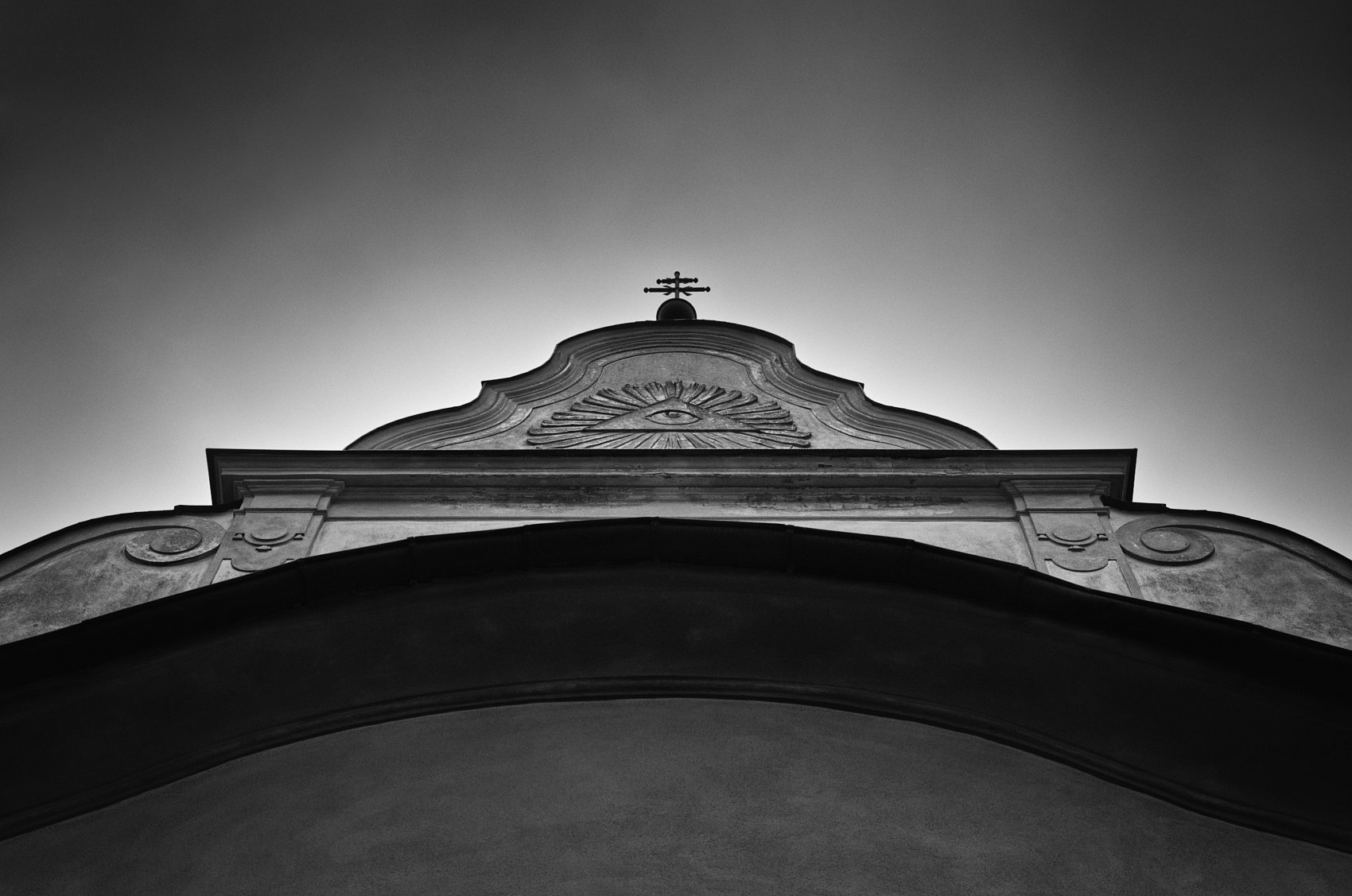 - Popis fotografie: (5. února 2026) Božího oka na kostele sv. Jiljí (Moravské Budějovice) jsem si všiml cestou z archivu. Jakožto student historie vím, že ty nejzajímavější příběhy nejsou jen v listinách, ale občas na nás shlížejí přímo z fasád budov, kolem kterých denně bez povšimnutí procházíme.