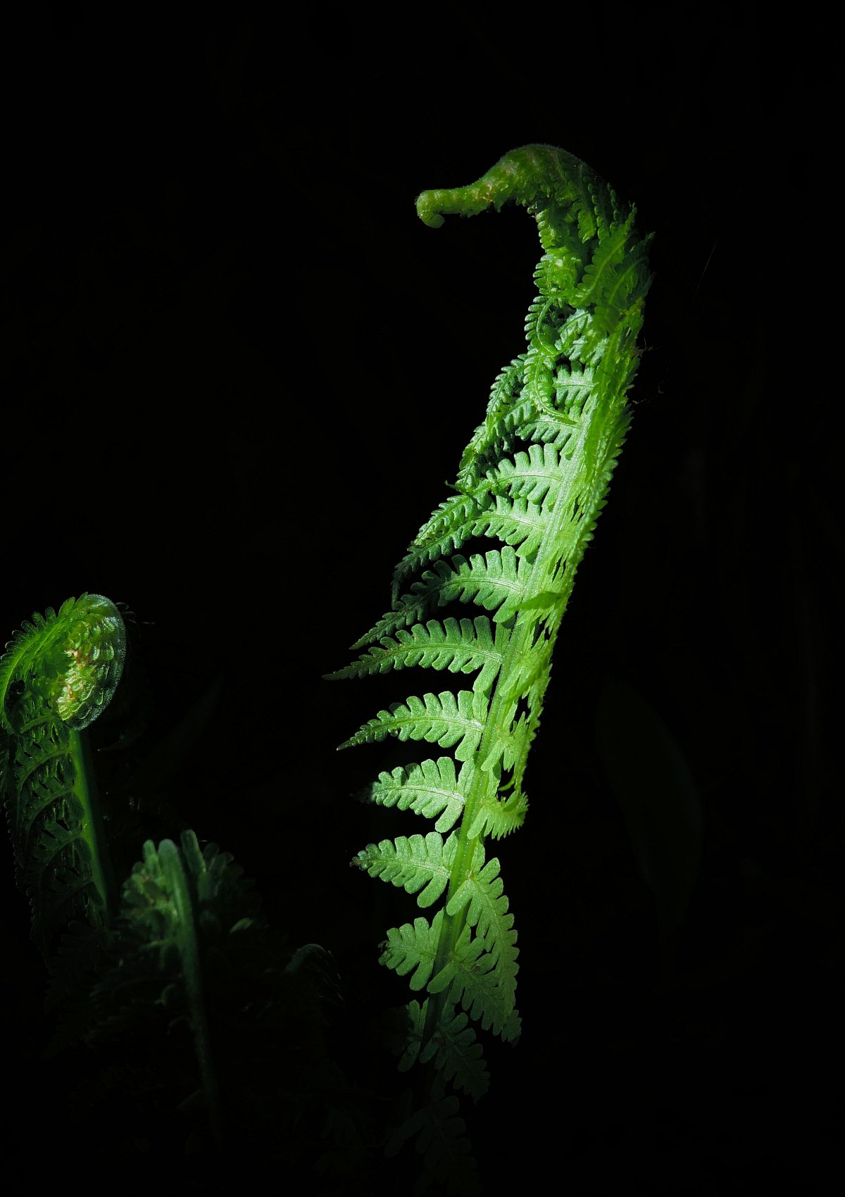 Jednoho krásného jarního dne, brzy ráno, osvítilo ostré raní slunce tmavý lesní "kout", kde rostou kapradiny. Tvar rozvíjejícího se listu kapradiny mi evokoval koníka, toho mořského....odtud tedy název pro fotografii.