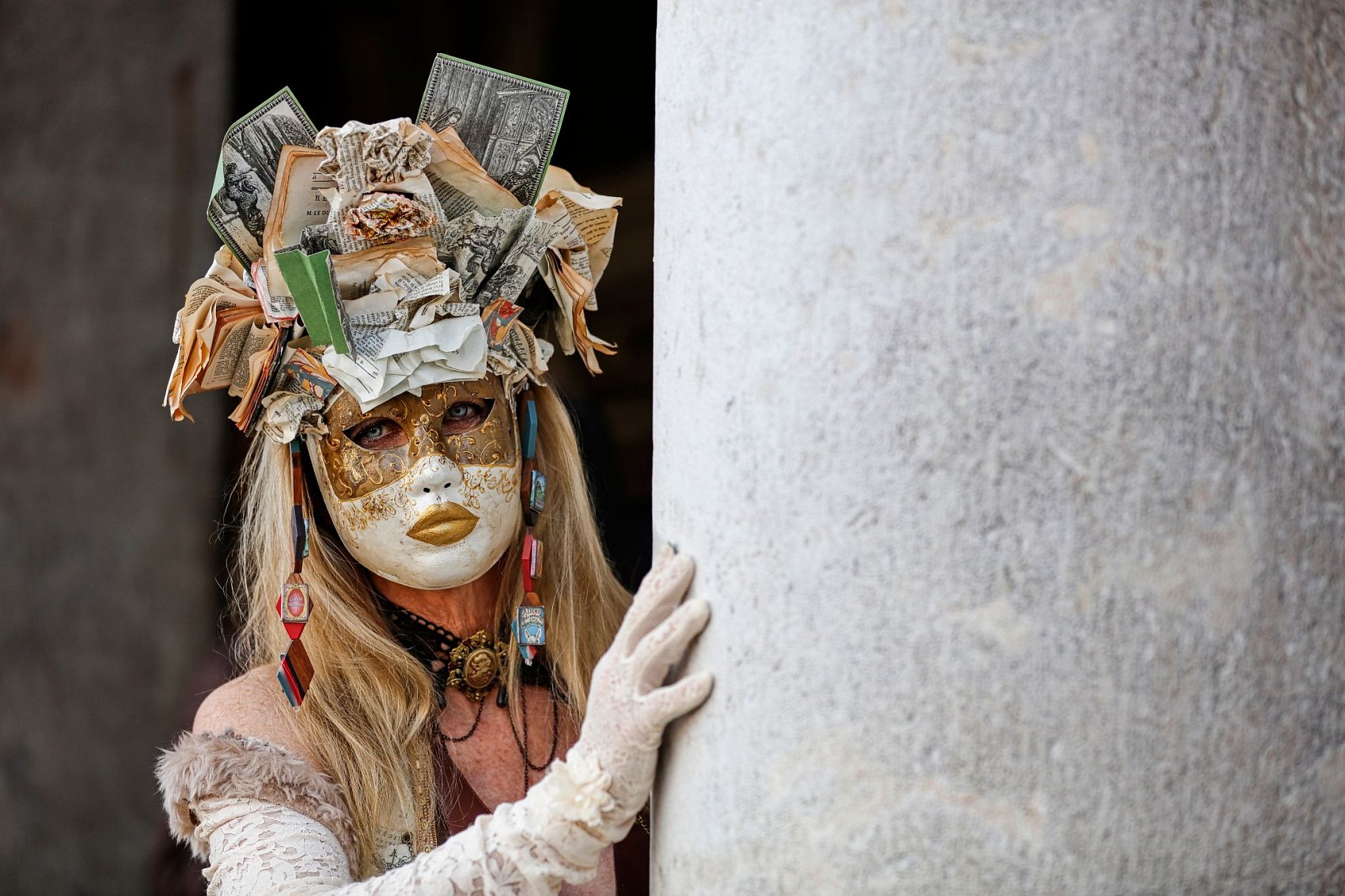 - Popis fotografie: 15.2.2026 - Póza vědmy na Piazza San Marco při karnevalu v Benátkách