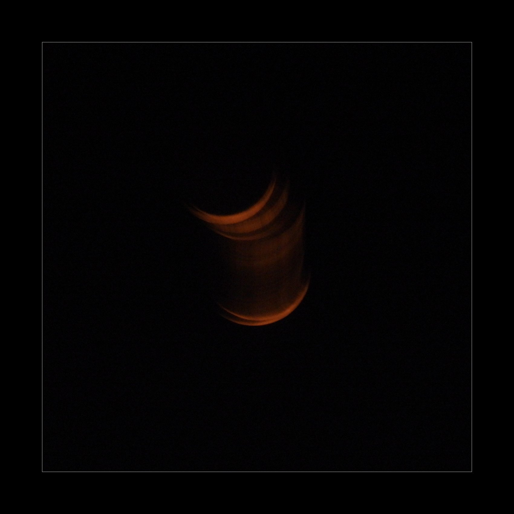 20. 1. 2026, snímek vznikl při večerní jízdě autem, na nebe se vyhoupl úzký srpek Měsíce. Zastavit nešlo.